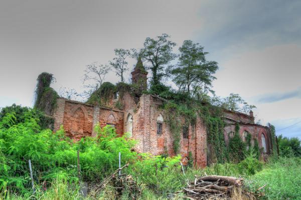 About a mile from the village, the PCs will reach the ruins of a Bygone church. There seem to be a lot of animal tracks around the church, and if they search hard enough, they'll find puddles of that foul green substance all around the area. What has happened is that a