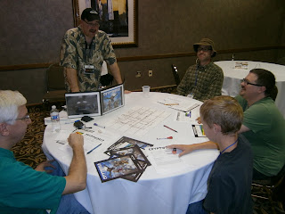 After the Pumpkin Men are driven off, the villagers gather in the communal central area to both thank the PCs for saving them from the evil marauders, as well as to determine their next course of action. According to the villagers, the Pumpkin Men have been attacking and raiding the town around Harvest Time every year. Each year, the village is able to drive them off. A group of villagers is then selected to go over the hills and into the neighboring "Valley of the Gourds" where a huge pumpkin patch grows wild, filling the valley floor. It is from this patch that the Pumpkin Men are spawned. They have tried destroying all gourds they encounter; tearing up the soil and salting the earth; drenching the soil with poisons -- nothing seems to put a permanent end to the recurring terror.