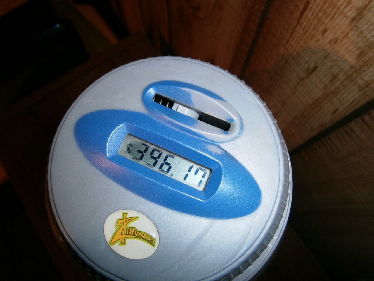 1. What a great idea. Where did you get the coin jar lid that calculates the contents?