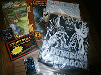 The exploratory adventure takes place in a nearly-buried ruin found deep in a fetid swamp near Hugeston. This monument to Ancient capitalism is isolated by distance and hard-to-traverse terrain...meaning it's a PERFECT lure for curious post-apocalyptic scavengers. There is no "plotline" to speak of in the adventure, but rather an opportunity to go exploring in one of the bastions of Ancient civilization: the mall. However, this is no mere abandoned hulk. The mall is inhabited by an odd assortment of crazed service bots, a sandlewood-scented arachnid, and (my favorite) a bigoted pile of algae. As the PCs move from store to store and encounter to encounter, they may discover the cult-like creatures lurking at the heart of the mall. But that's a secret I'll leave you to discover on your own. (You'll never look at breakfast pastry the same way again.)