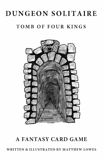 Dungeon Solitaire: Tomb of the Four Kings! This snappy little solitaire card game uses only a standard deck of cards (plus one Joker) and challenges the player to enter a long-forgotten tomb, fighting monsters and gathering treasure. You only score if you can make it back out alive, so watch your hit points and don't run out of torches! You score more points if you're able to discover the four treasure rooms of the Kings, so will you delve even deeper into the crypt, or will you run for the entrance when the mighty 10 of Spades surfaces?