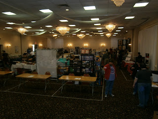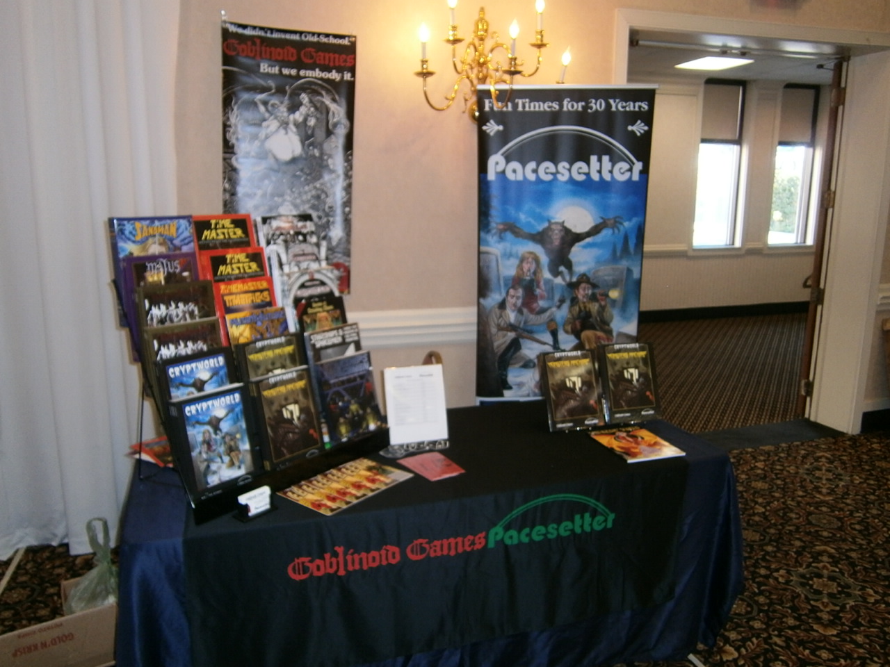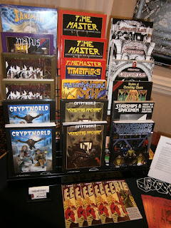- Booth is set up and well-stocked with tons of games. Once the vendor's hall opened, there was a ton of interest in Cryptworld, Monsters Macabre, and Starships & Spacemen 2e. Made several sales, but the first day is usually light. I'm set up right next to Roy Snyder and the Goodman Games booth, so we whiled away the hours gabbing about games, life, and other jazz.