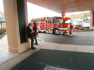- HOLY CRAP, THE HOTEL'S FIRE ALARM WENT OFF. THE VENDOR'S HALL WAS BEING EVACUATED AS HRONK-HRONK-HRONK ECHOED THROUGHOUT THE BUILDING. THE FIRE DEPARTMENT SHOWED UP AND INSPECTED THE HOTEL, AND IT WAS DETERMINED TO BE A FALSE ALARM. BUT HOLY CRAP, WAS IT LOUD. THAT'S WHY THIS IS IN ALL CAPS. THIS IS WHAT IT WAS LIKE TRYING TO TALK TO OTHERS WHILE HRONK-HRONK-HRONK WAS SOUNDING.