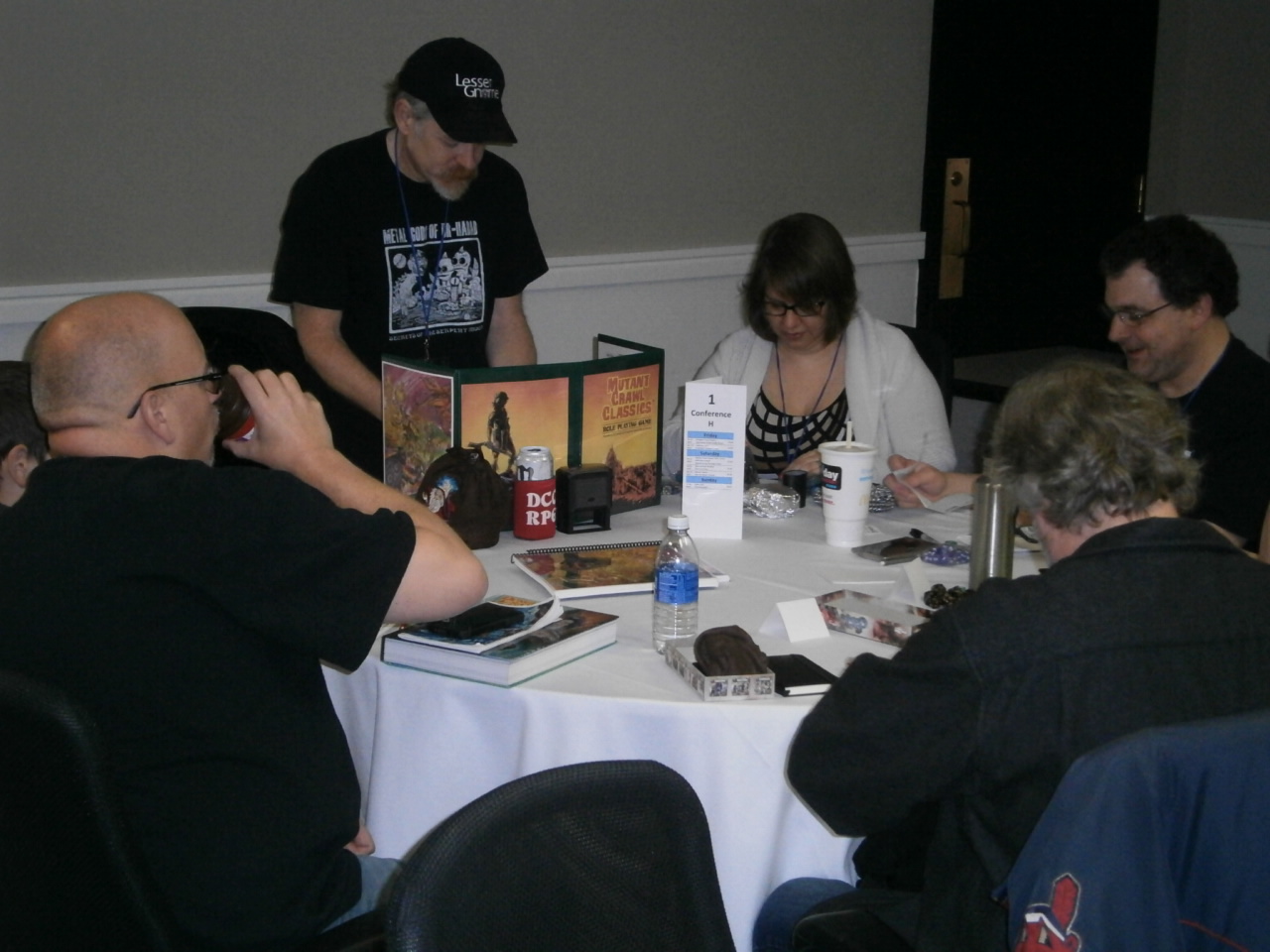 While Thundarr raged at a nearby table, Jim Wampler ran a group through Mutant Crawl Classics, the upcoming post-apocalyptic RPG written by him. Would love to play in the game some day.