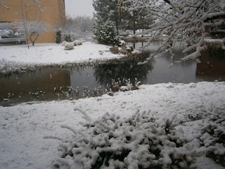 I took this photo of the snowfall when it began around noon. By that time, there were a couple of inches on the ground. By evening, we had hit 6 inches, and the snow was continuing to fall as evening fell.
