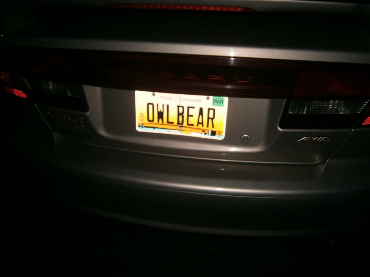 Wow, now THAT is an OSR gamer's license plate if ever I saw one. I salute you, Owlbear Car Person.