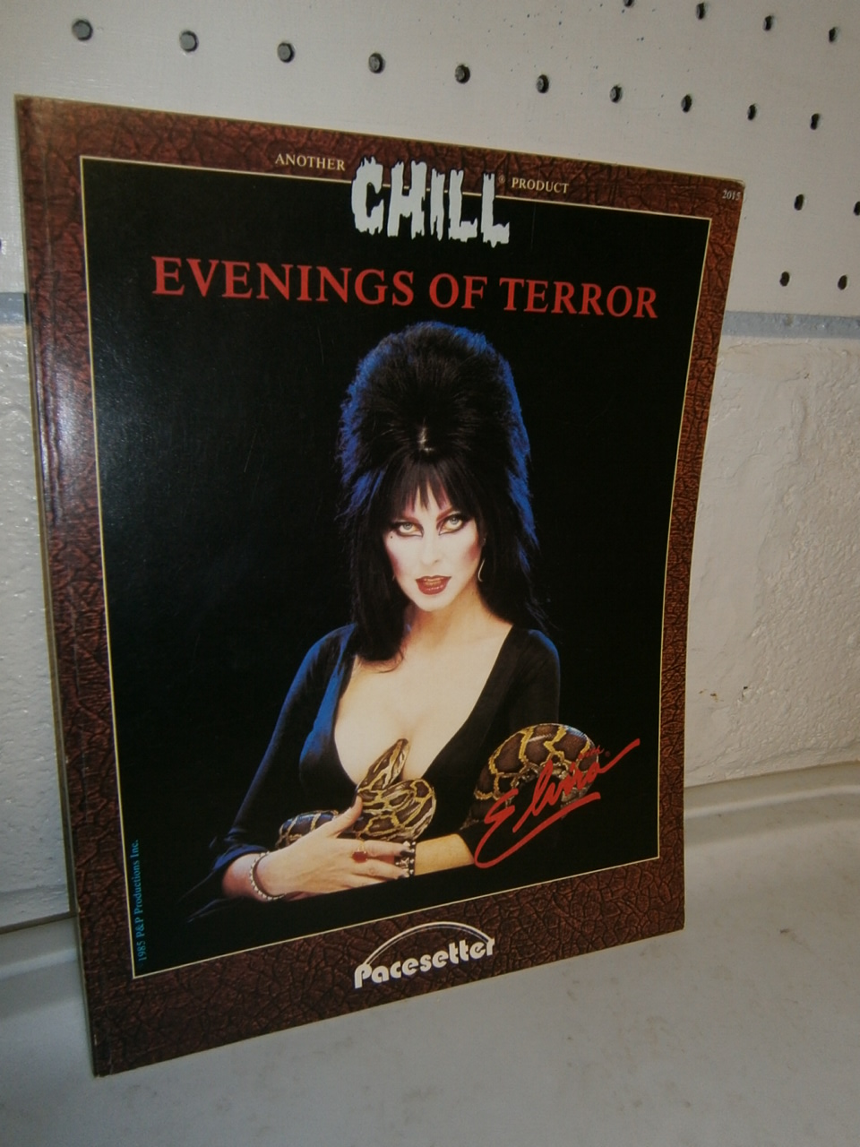 Someone will win my one of my favorite RPG supplements -- Chill's Evenings of Terror. This great adventure compilation has NINE separate horror adventures for the Pacesetter Chill RPG and, by extension, Cryptworld! Great stuff within!