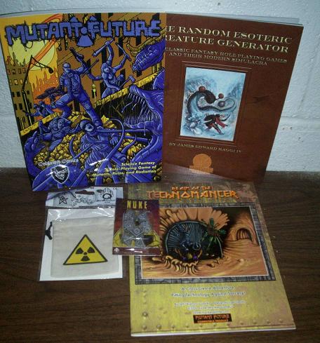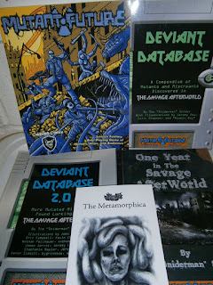 The Mutant Future rules (soft cover); Deviant Database (both 1.0 and 2.0); One Year In The Savage AfterWorld; and The Metamorphica.